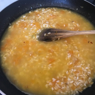 «Поджарьте» слегка рис с тыквой, затем добавьте бульон, паприку ( по вкусу) и шалфей.